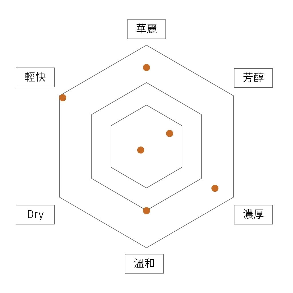 具有白葡萄酒般的甘甜與酸味,風味有如白葡萄、柑橘般鮮活的果實感,甜味與酸味相當平衡。